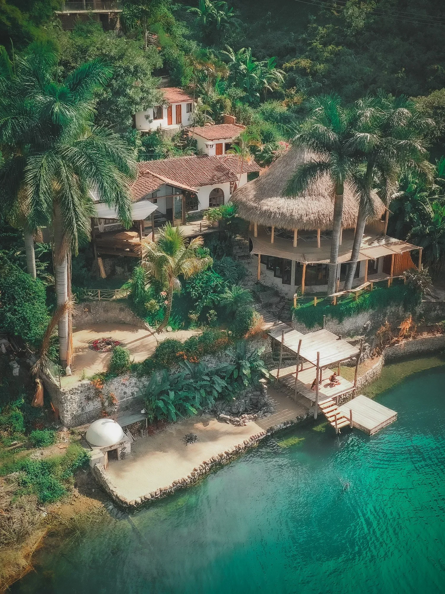 They have developed this sacred space intentionally and prayerfully on the very shore of Lake Atitlan Guatemala on a secluded bay 5 minutes walk from the holistic town of San Marcos La Laguna, part of Cerro Tzan Kujil’s protected natural reservation.